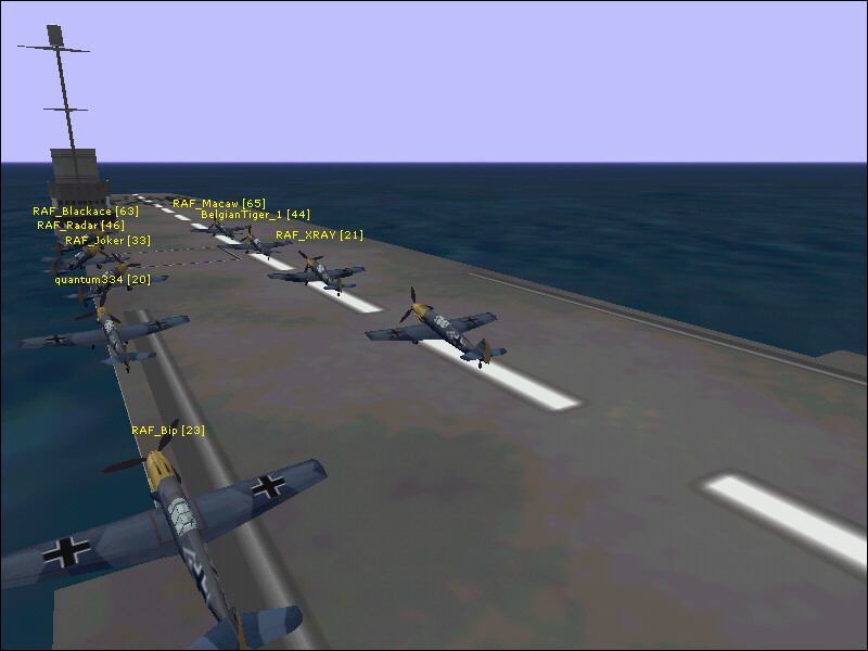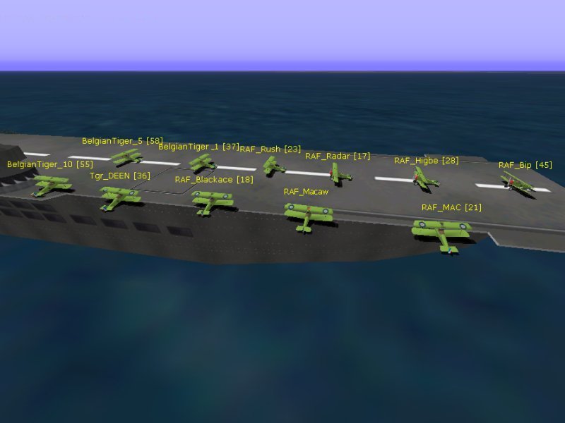 All records on this page are at medium settings = 95%.All records must be done under these conditions! You must have all of the planes on deck at the same time! If you beat a standing record or create a new one then send a picture to me with the labels turned on so all pilots get credit! Make sure that everyone has yellow labels. This color comes out the best!The 100% Ark Royal Records are here---> http://www.raf_moro.homestead.com/